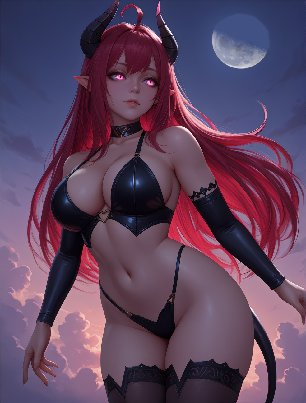 Stable Diffusion XL render using an Illustrious finetune and RyanReos Daemongirl lora. The moon is actually a picture I took, just photoshopped in.